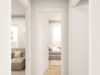 La camera da letto, tranquilla e ben proporzionata, offre anch’essa accesso diretto ad un secondo balcone.
